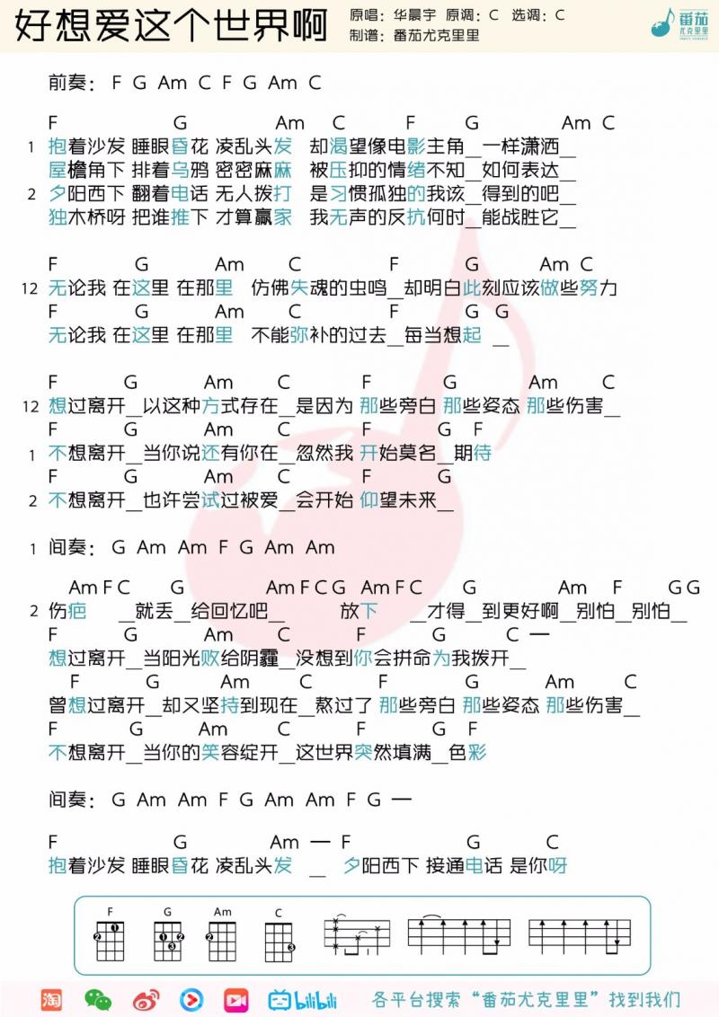 当前位置:琴谱网>尤克里里>好想爱这个世界啊