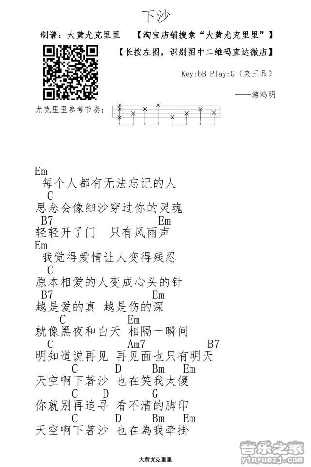 曲谱介绍: 《下沙》,共有2张高清图谱,免翻页排版设计。