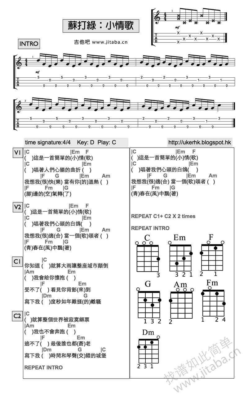 曲谱介绍: 《小情歌》,共有1张高清图谱,免翻页排版设计。