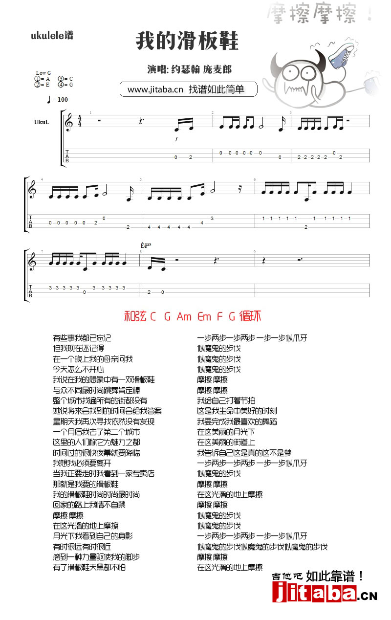 我的滑板鞋尤克里里谱