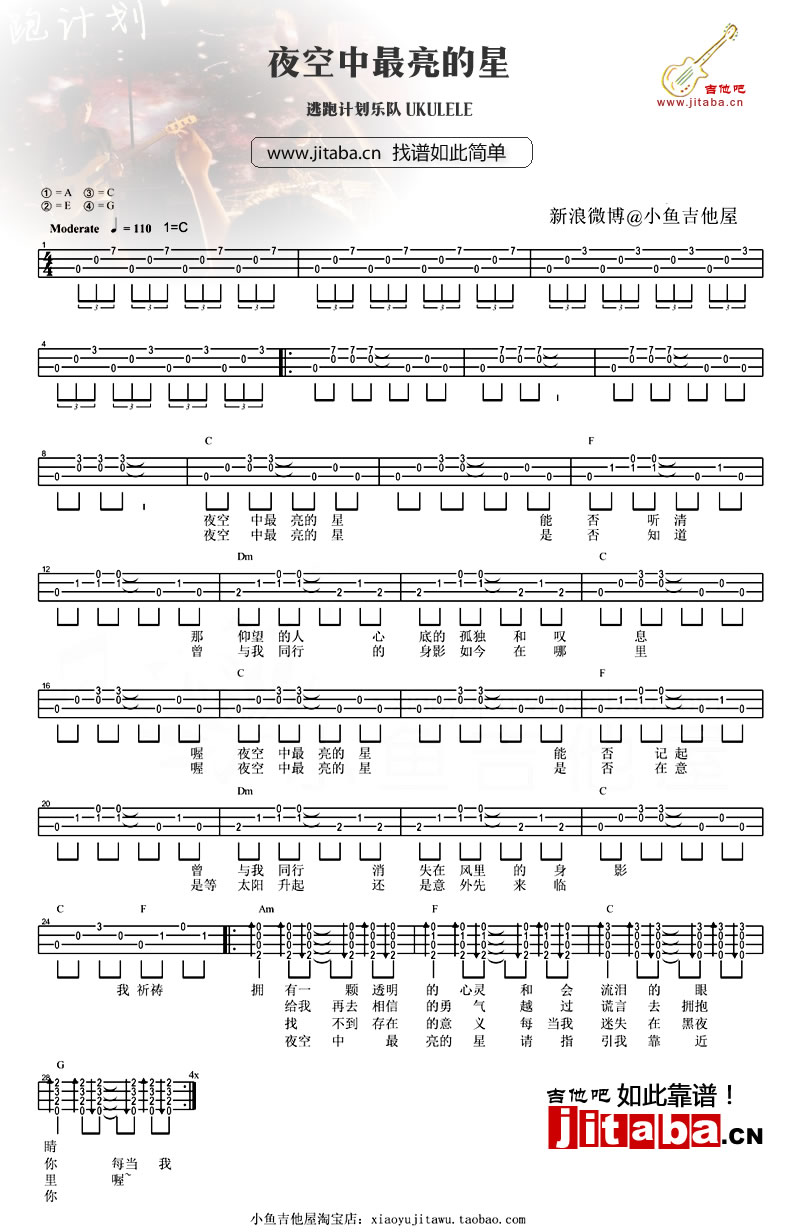 夜空中最亮的星尤克里里谱