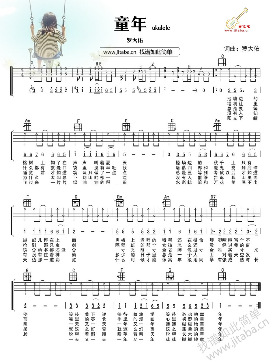 曲谱介绍: 《童年》,共有1张高清图谱,免翻页排版设计。