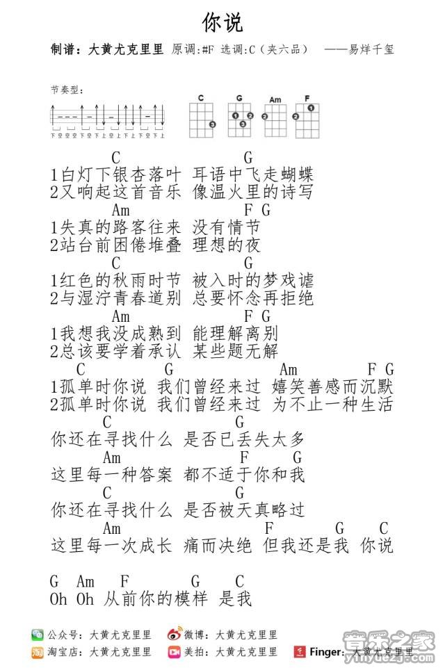 曲谱介绍: 《你说》,共有1张高清图谱,免翻页排版设计。