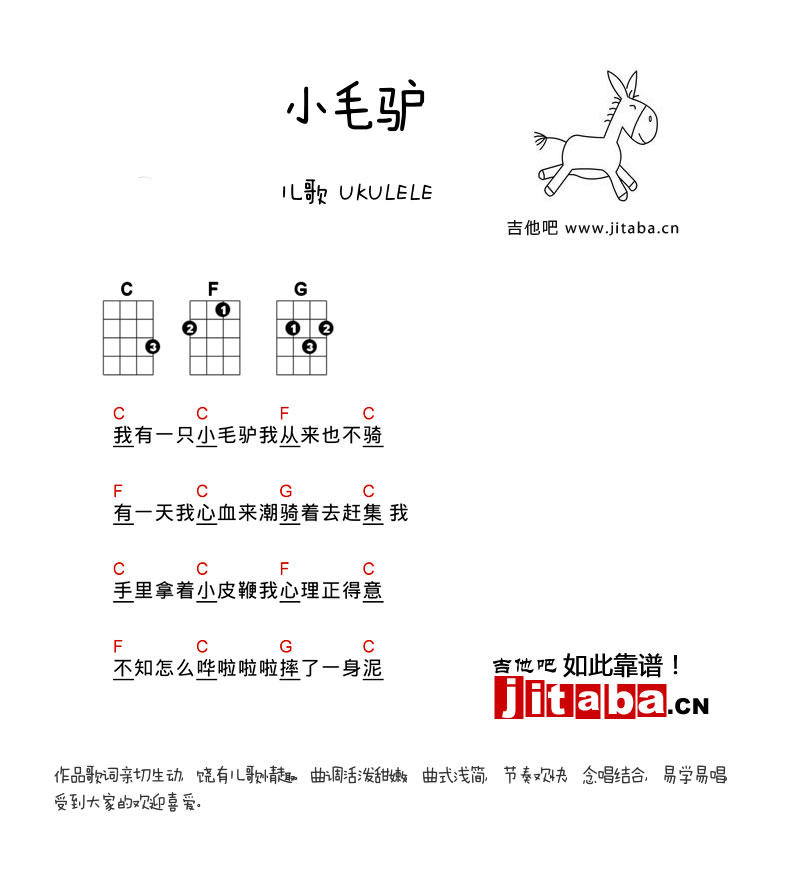 曲谱介绍: 儿歌《小毛驴》,共有1张高清图谱,免翻页排版设计。