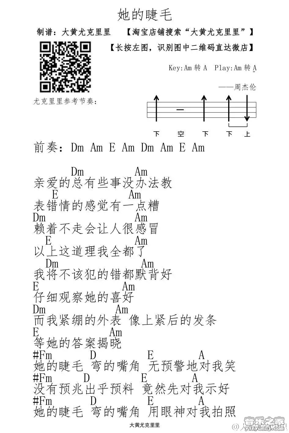 曲谱介绍: 周杰伦《她的睫毛》,共有2张高清图谱,免翻页排版设计。