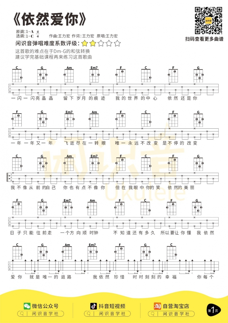 依然爱你尤克里里谱 - 王力宏