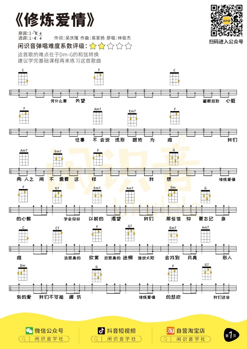 当前位置:琴谱网>尤克里里>修炼爱情