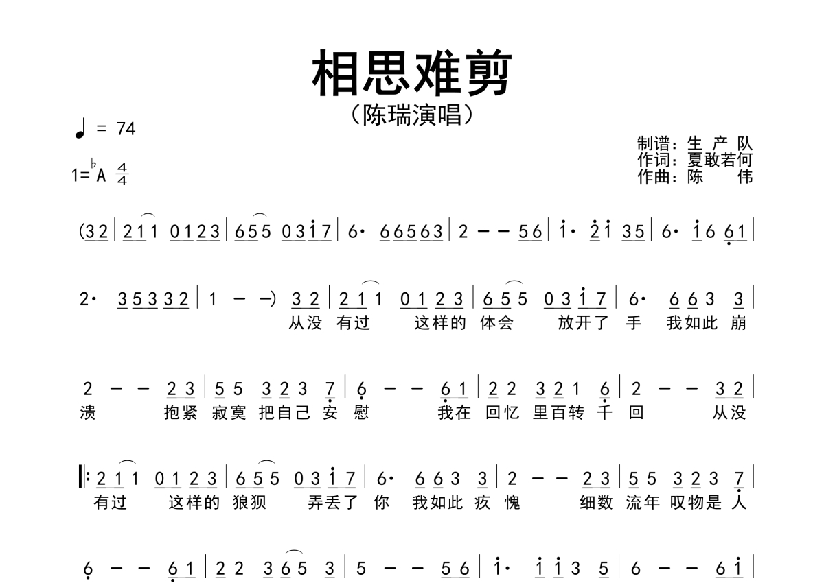 • 相思难剪简谱 - 陈瑞 - 简谱第1张