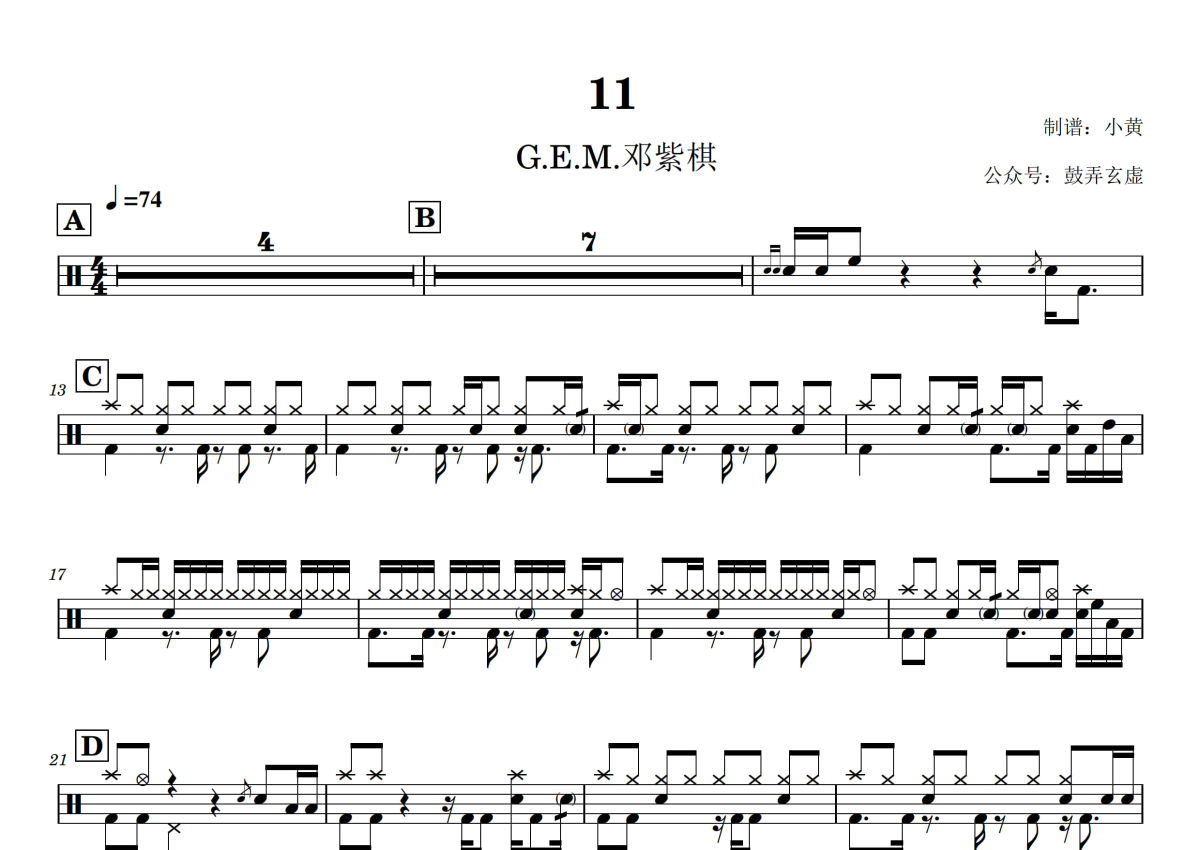 • 11鼓谱 - 邓紫棋 - 架子鼓谱第1张