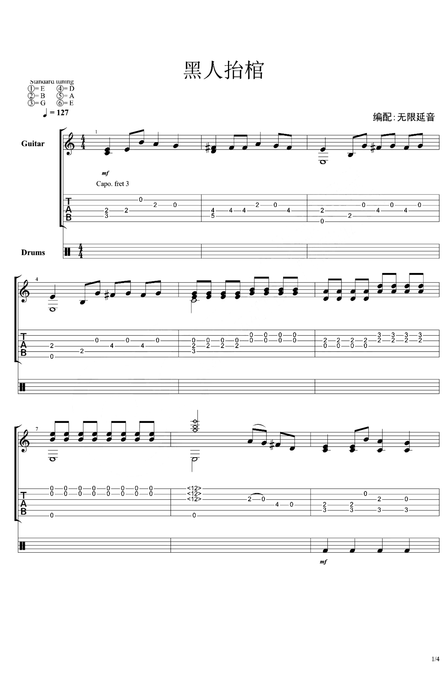 当前位置:琴谱网>吉他独奏>黑人抬棺