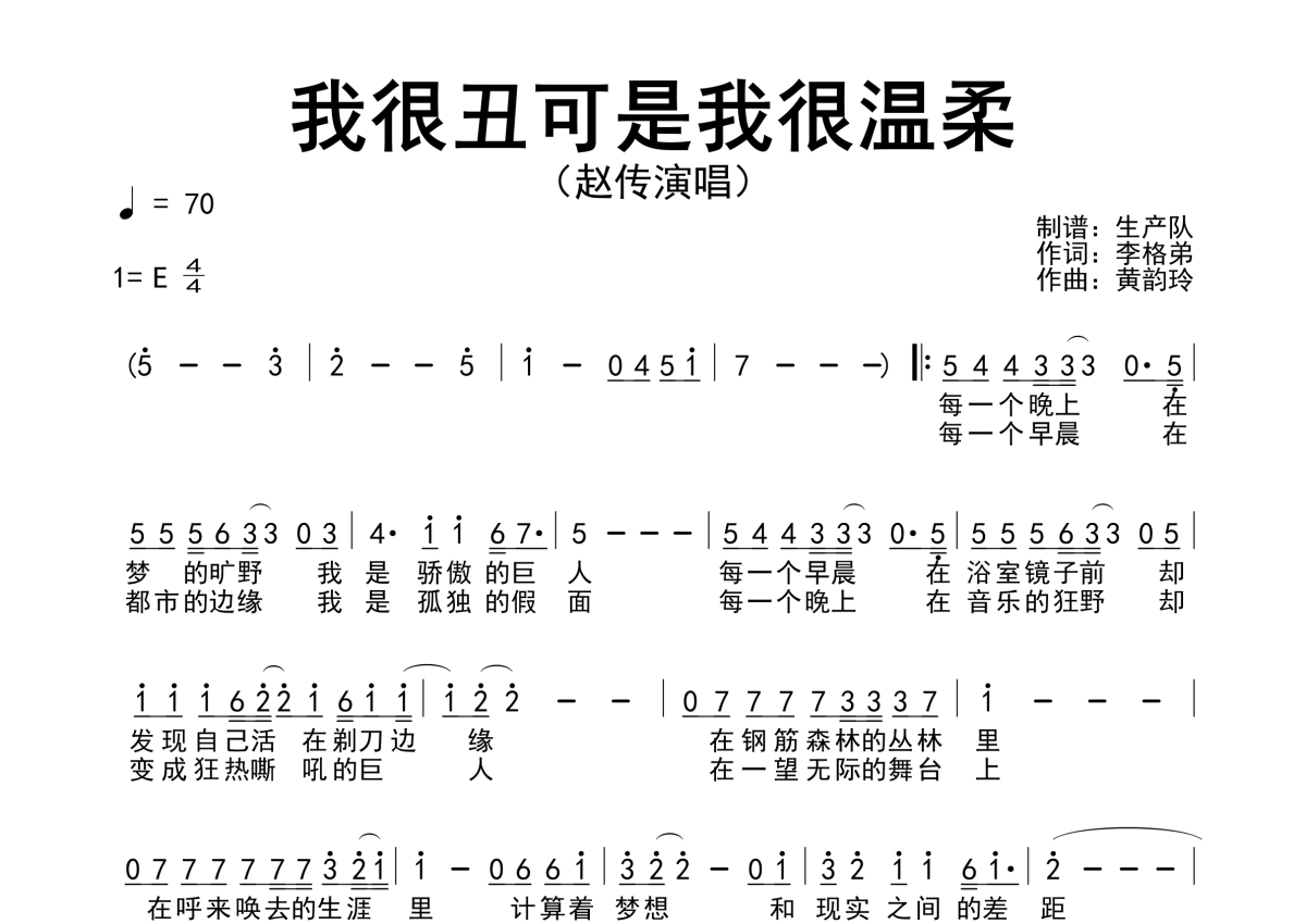 • 我很丑可是我很温柔简谱 - 赵传 - 简谱第1张
