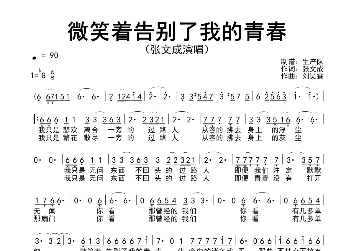 曲谱介绍: 张文成《微笑着告别了我的青春》简谱,生产队编配出品,共有1张高清图谱,免翻页排版设计。
