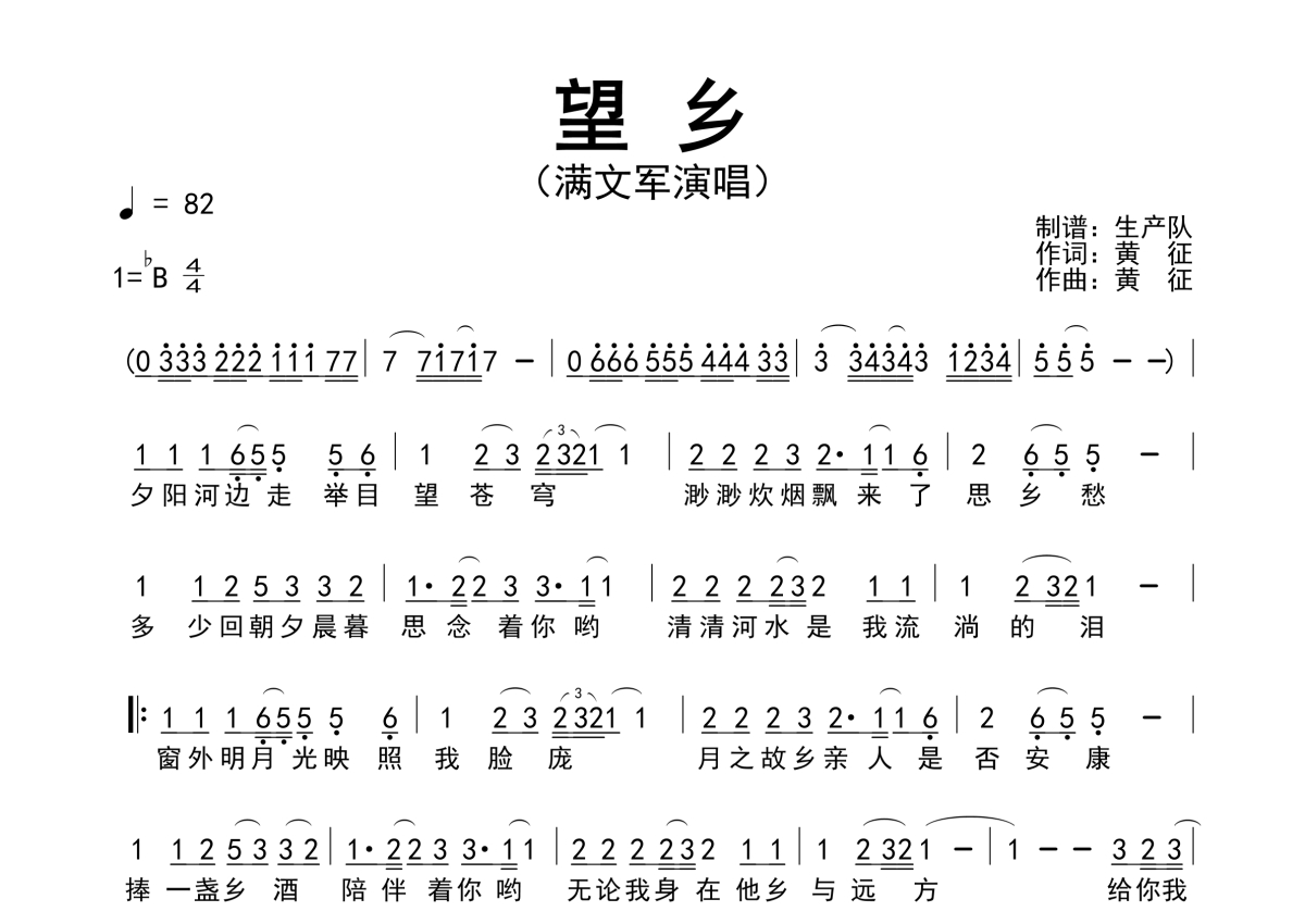 曲谱介绍: 满文军《望乡》简谱,生产队编配出品,共有1张高清图谱,免翻页排版设计。