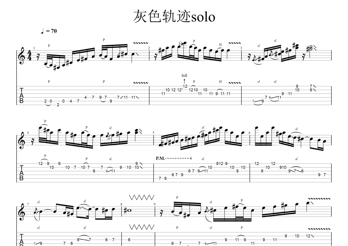 当前位置:琴谱网>电吉他谱>灰色轨迹solo