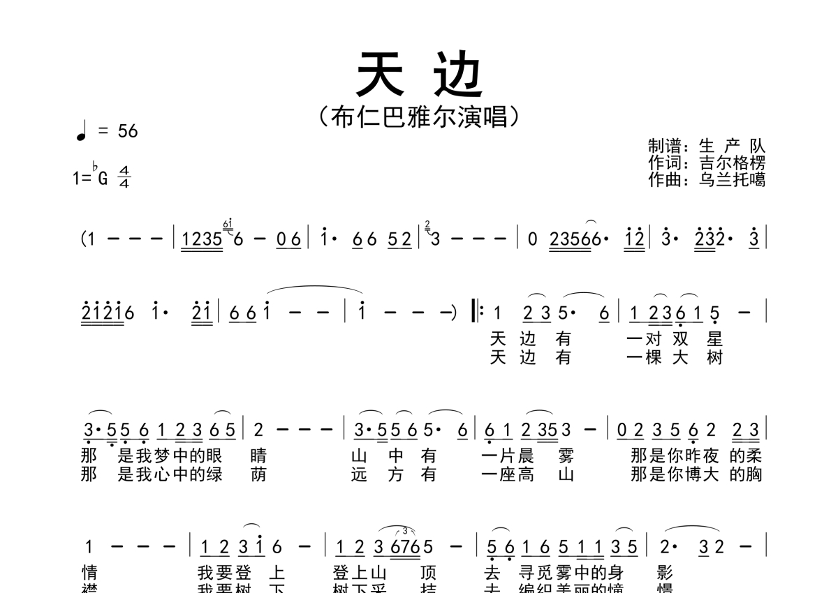 • 天边简谱 - 布仁巴雅尔第1张
