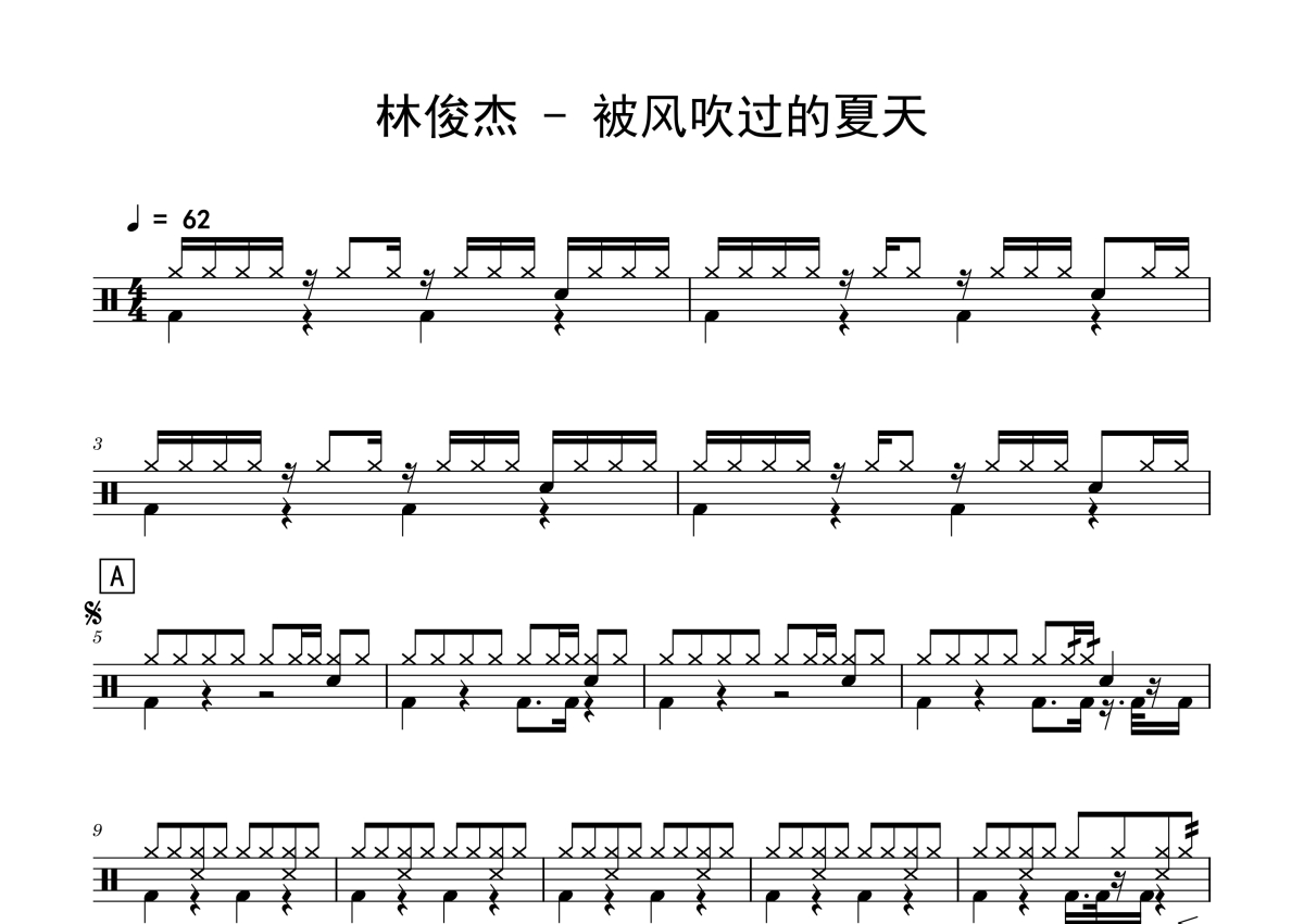 被风吹过的夏天鼓谱 - 林俊杰 - 架子鼓谱
