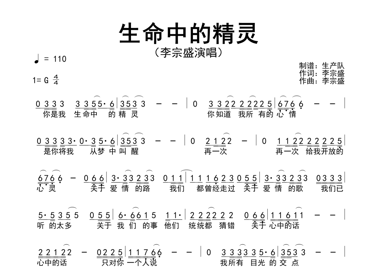 • 生命中的精灵简谱 - 李宗盛 - 简谱第1张