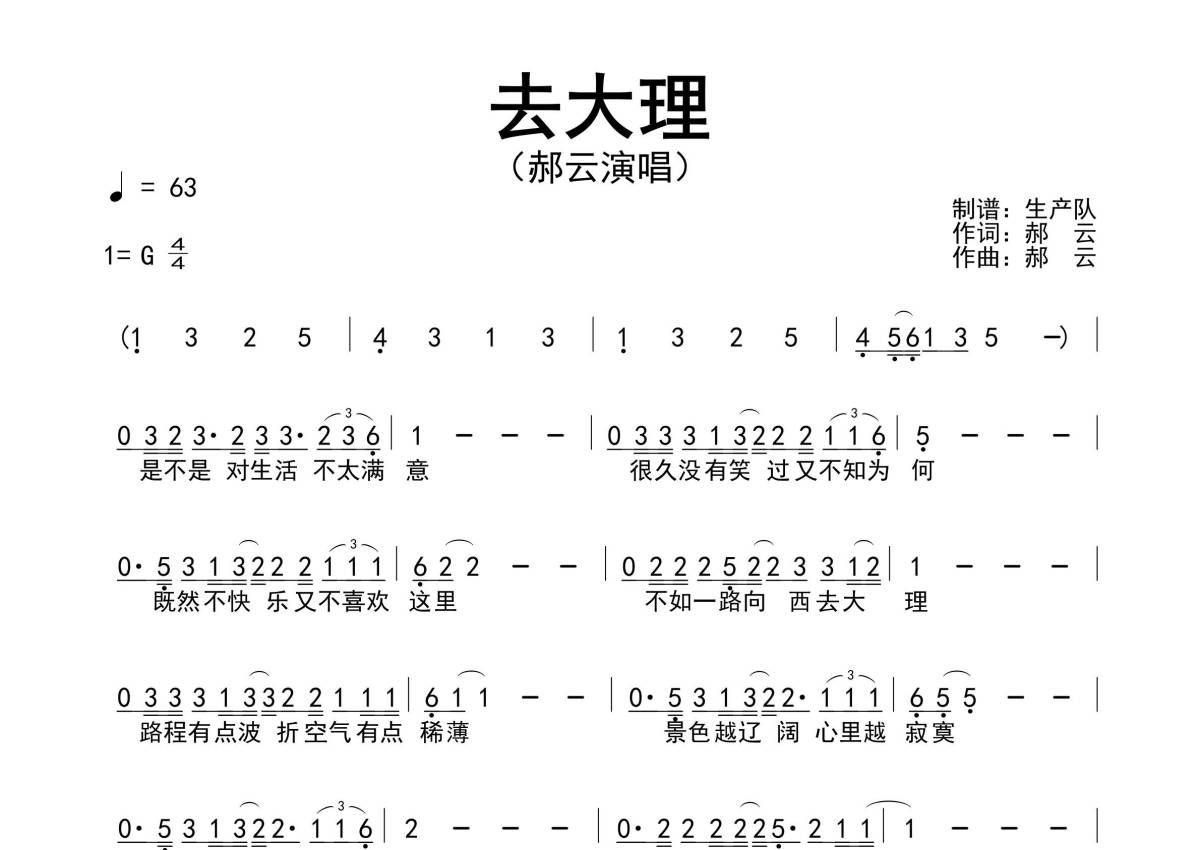 曲谱介绍: 郝云《去大理》简谱,生产队编配出品,共有1张高清图谱,免翻页排版设计。