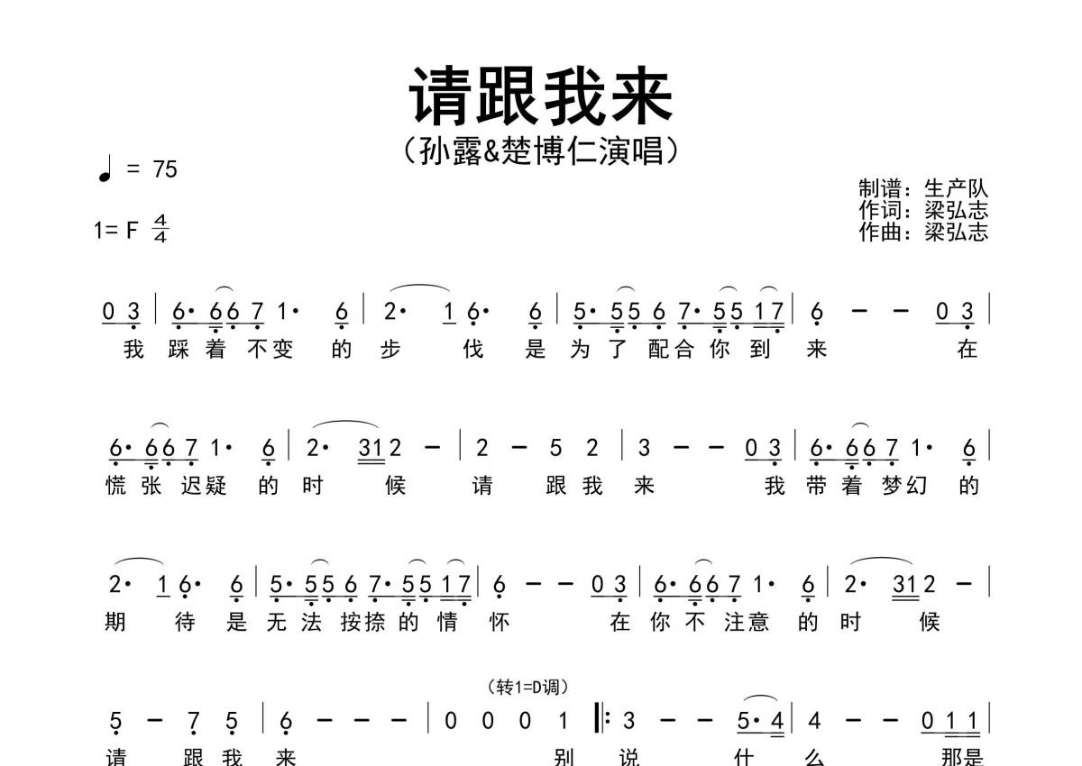 • 请跟我来简谱 - 孙露/楚博仁 - 简谱第1张