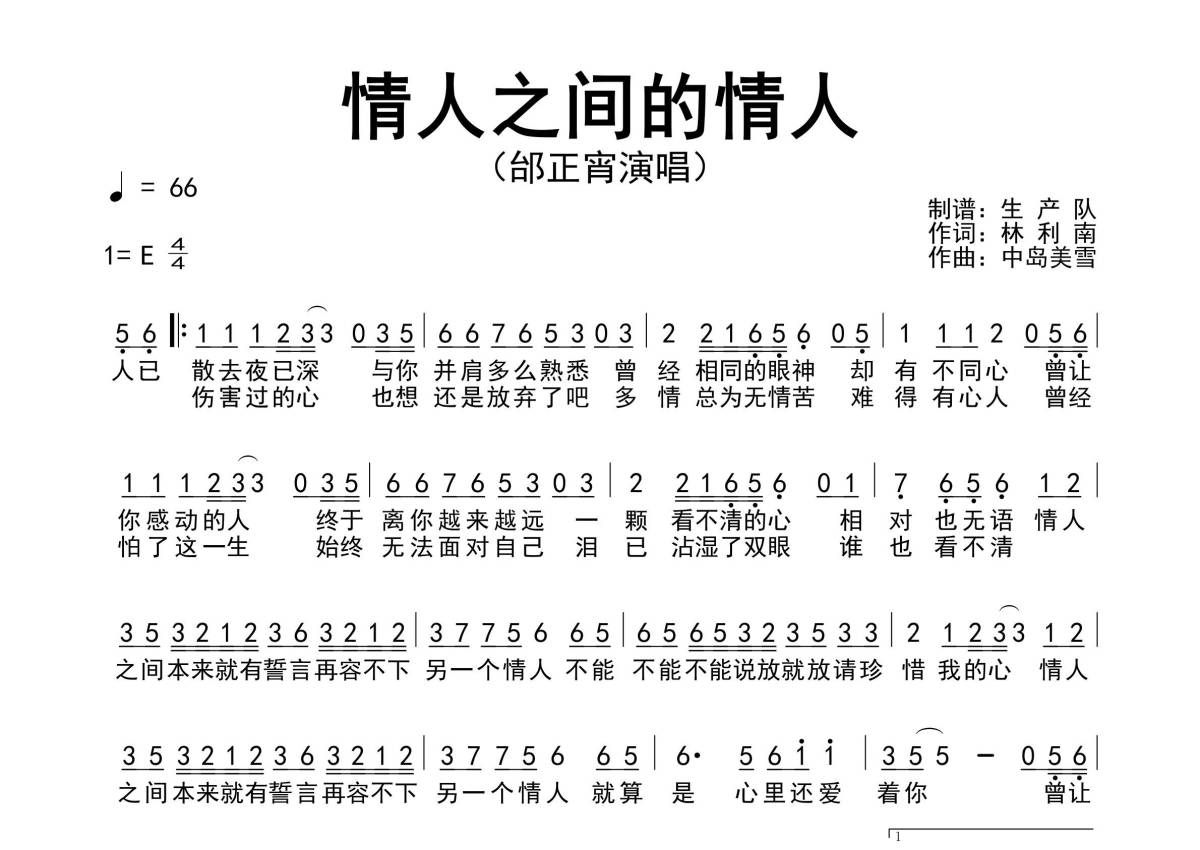 曲谱介绍: 邰正宵《情人之间的情人》简谱,生产队编配出品,共有1张高清图谱,免翻页排版设计。