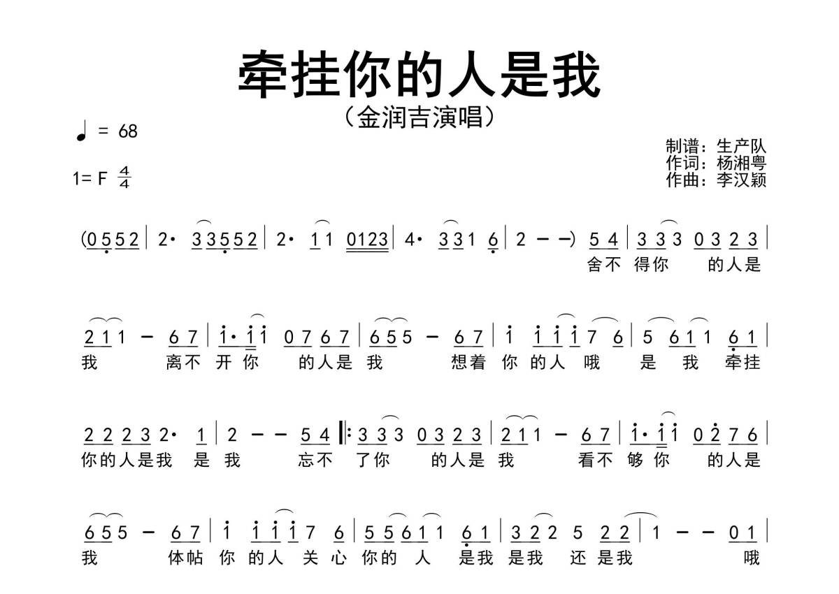 曲谱介绍: 金润吉《牵挂你的人是我》简谱,生产队编配出品,共有1张高清图谱,免翻页排版设计。
