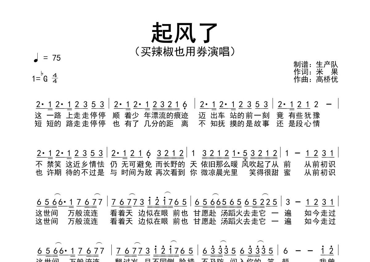 曲谱介绍: 买辣椒也用卷《起风了》简谱,生产队编配出品,共有1张高清图谱,免翻页排版设计。