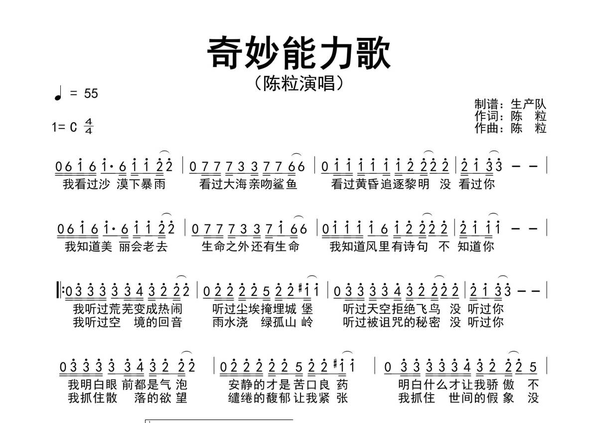 • 奇妙能力歌简谱 - 陈粒 - 简谱第1张