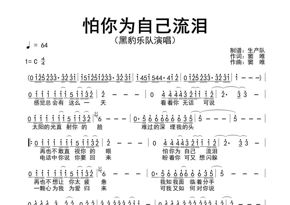 • 怕你为自己流泪简谱 - 黑豹乐队 - 简谱第1张