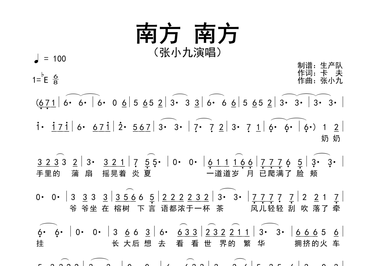 • 南方 南方简谱 - 张小九第1张