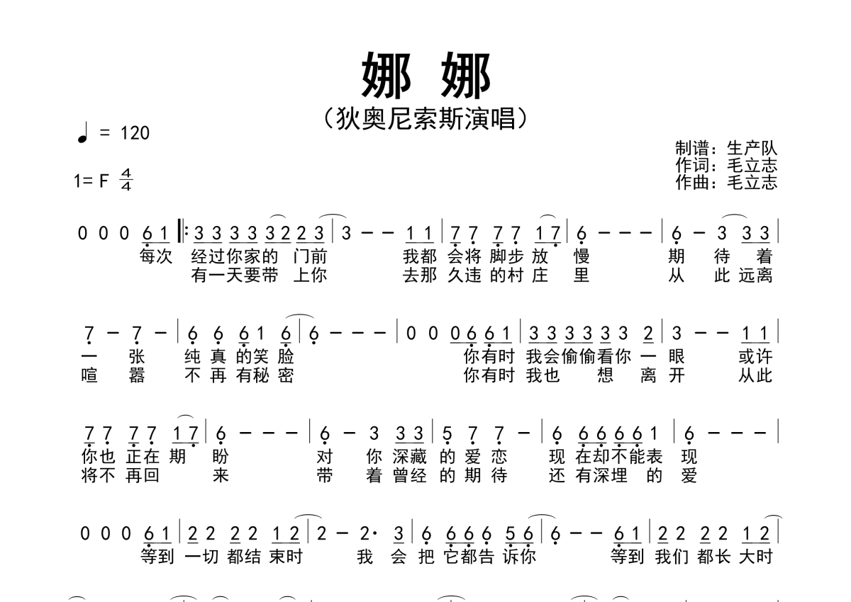 曲谱介绍: 狄奥尼索斯《娜娜》,生产队编配出品,共有1张高清图谱,免翻页排版设计。