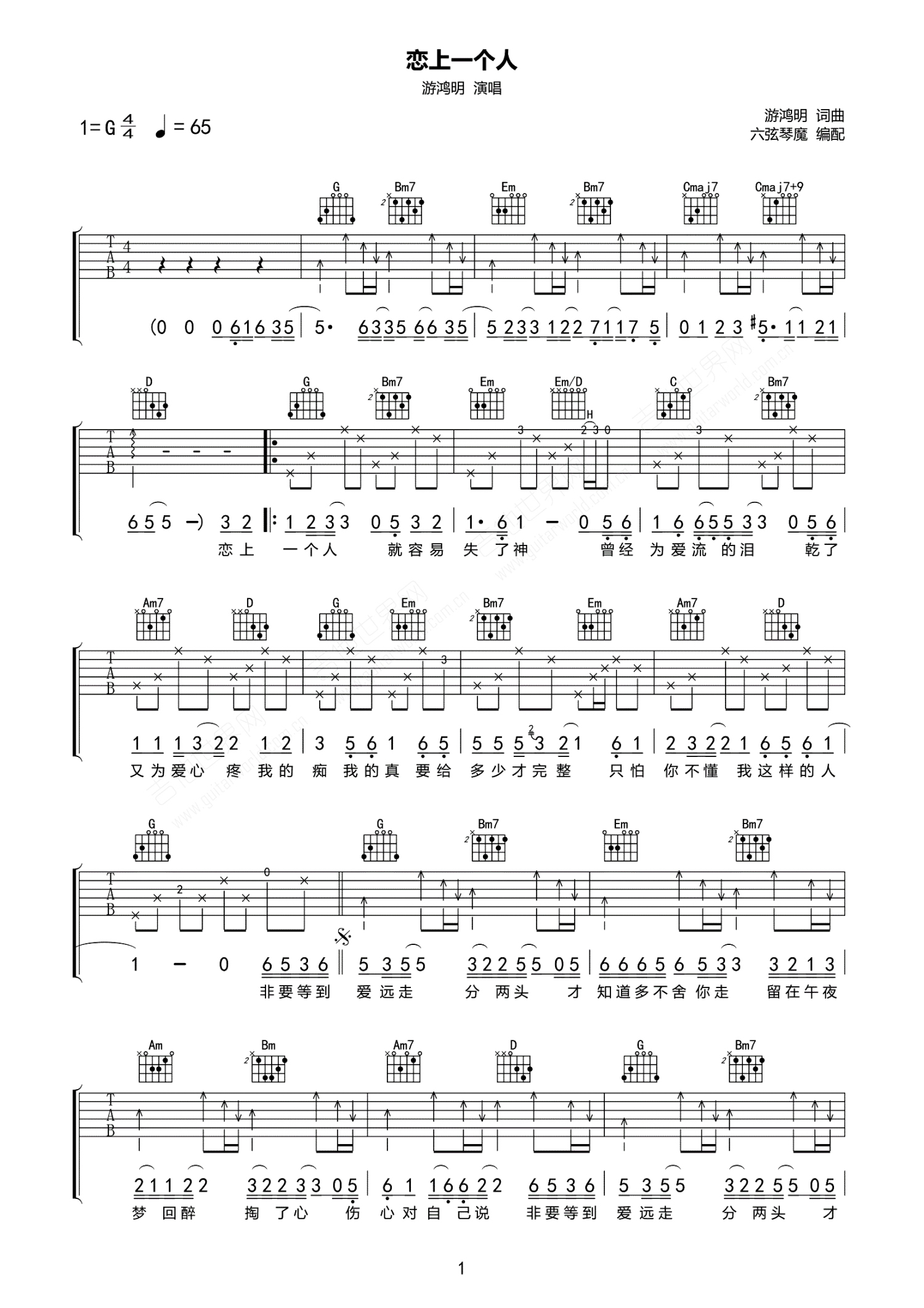 曲谱介绍: 游鸿明《恋上一个人》吉他谱_G调吉他弹唱谱