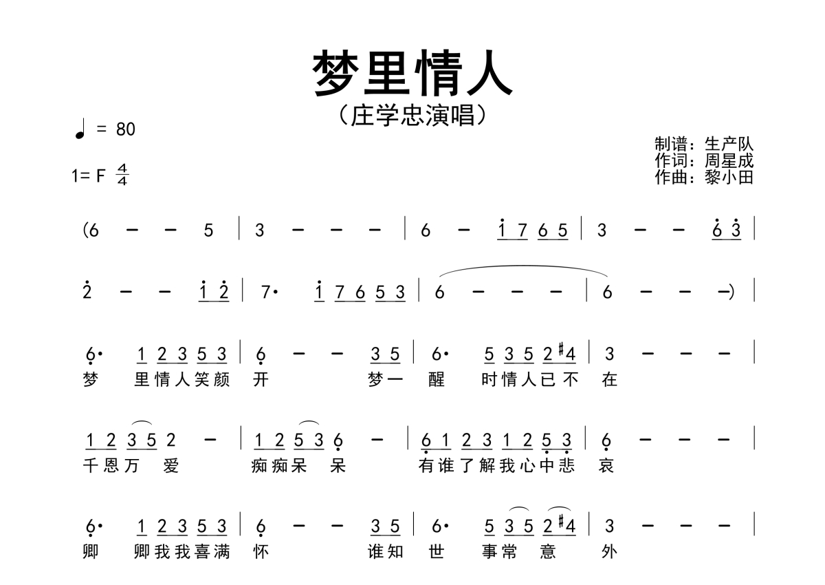 • 梦里情人简谱 - 庄学忠 - 简谱第1张