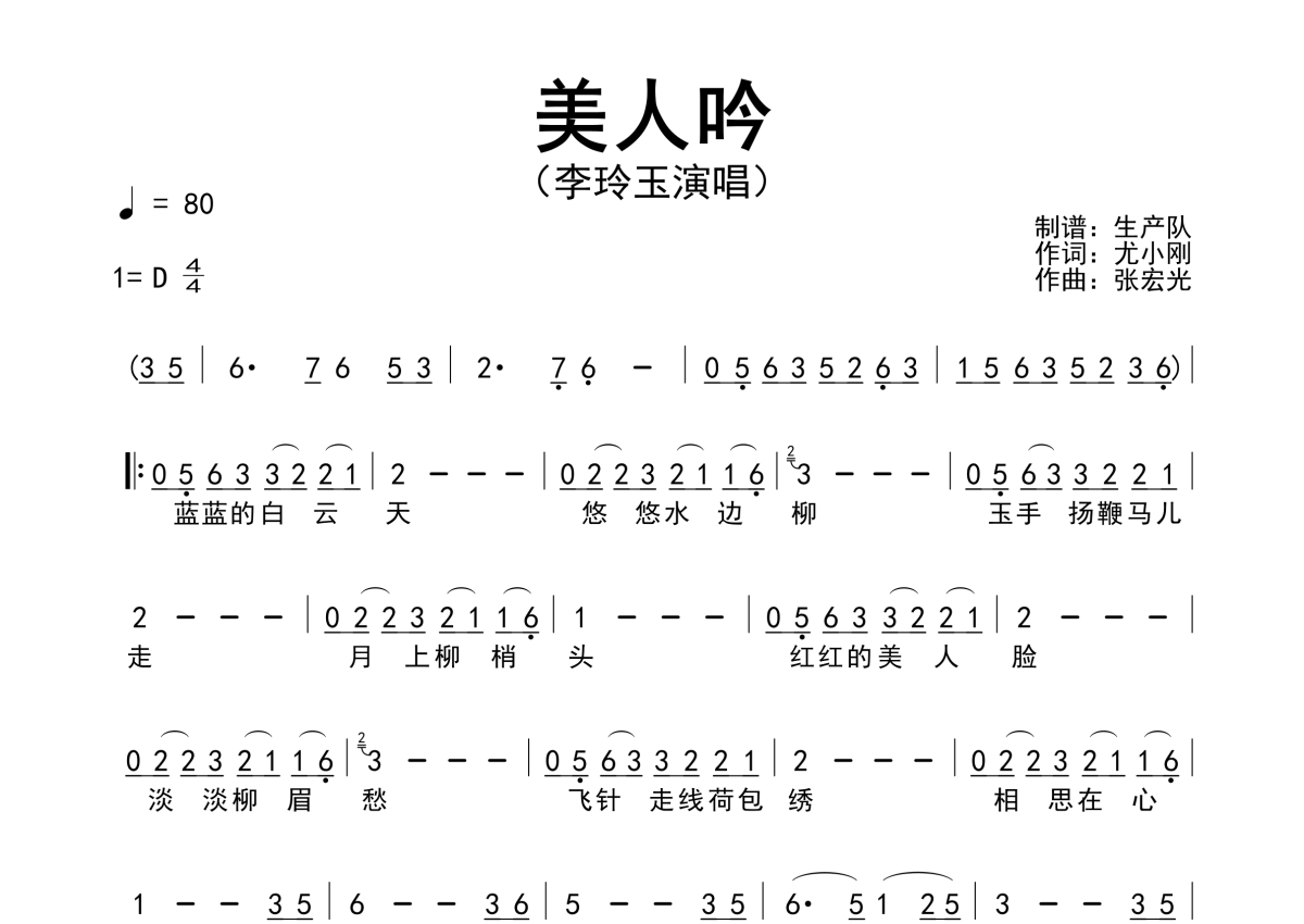 • 美人吟简谱 - 李玲玉 - 简谱第1张