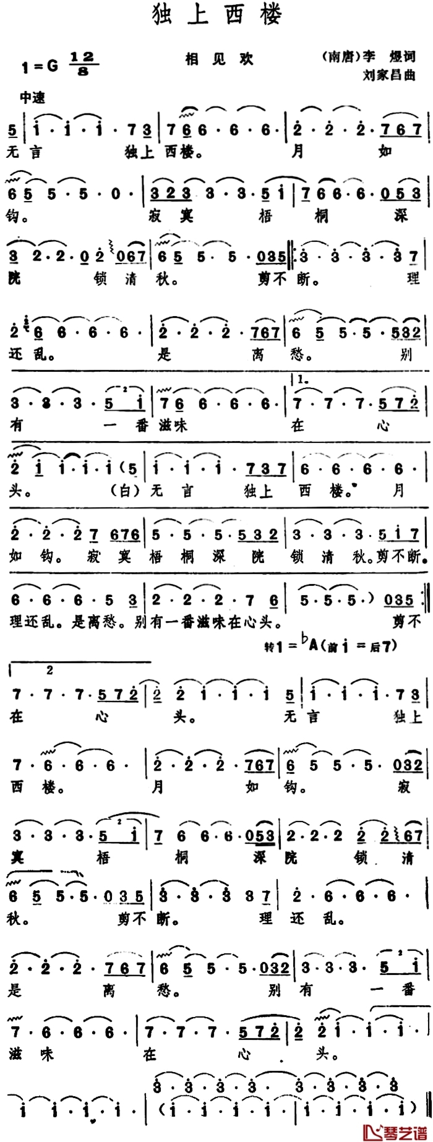 当前位置:琴谱网>简谱>独上西楼