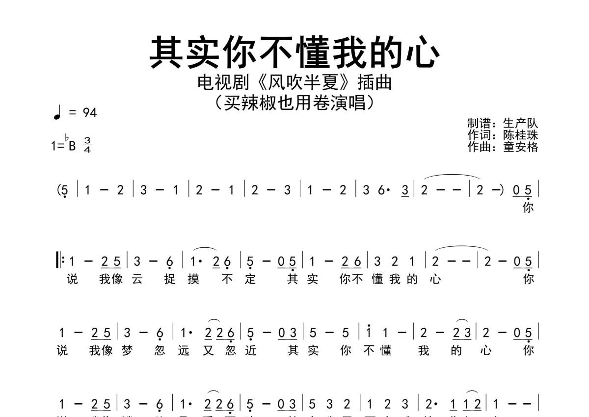 其实你不懂我的心简谱 - 买辣椒也用卷