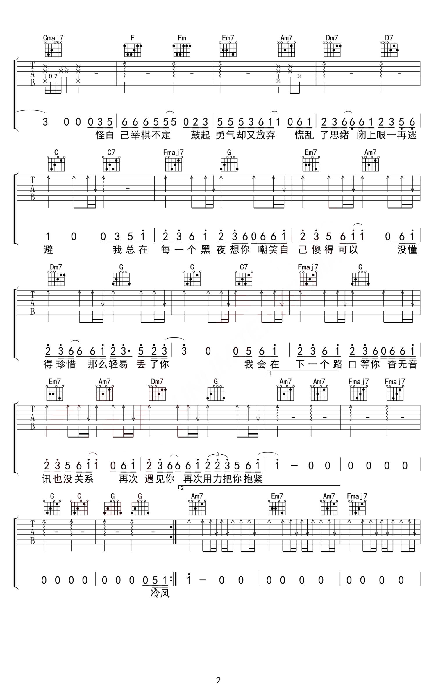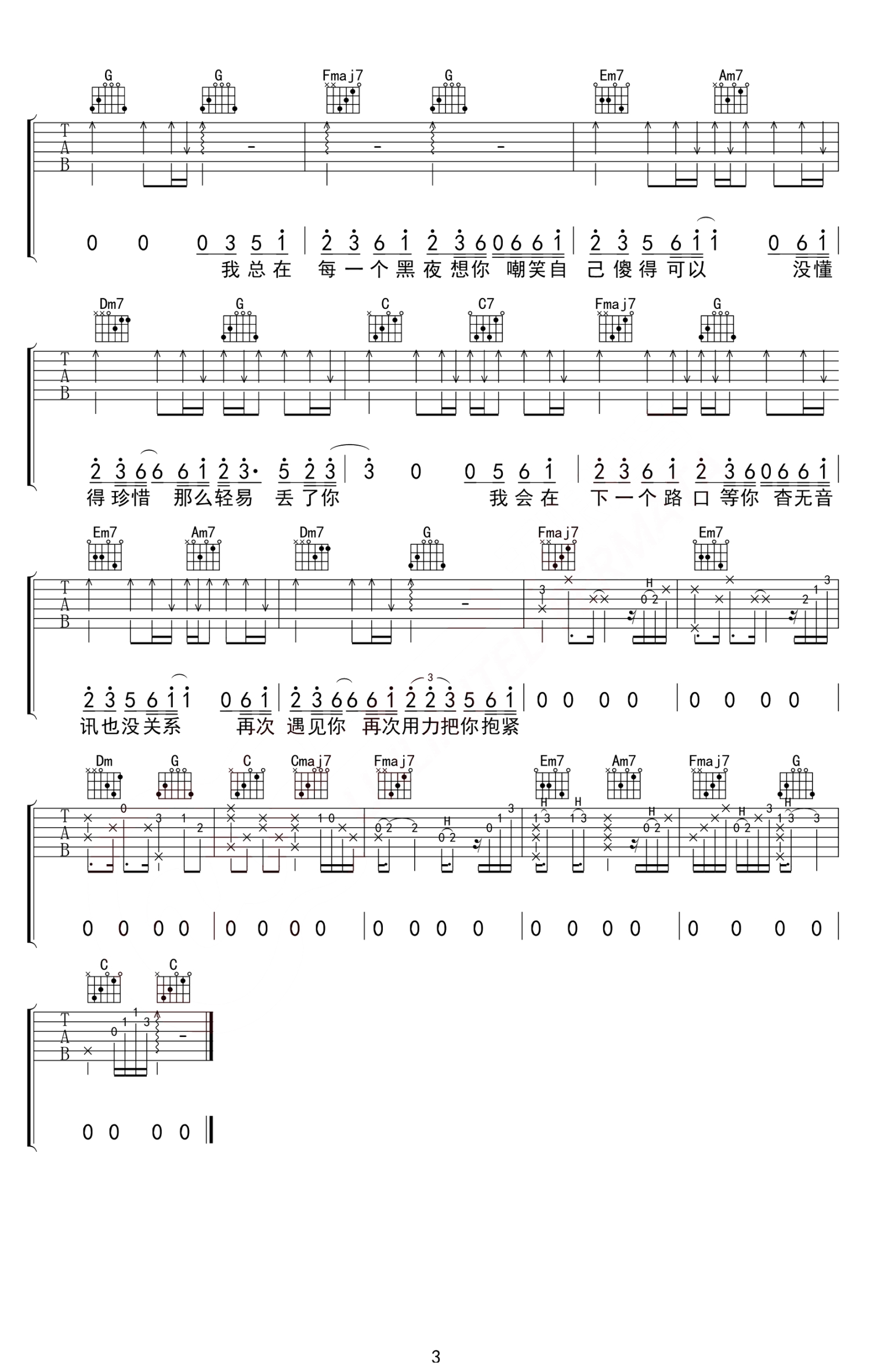 吉他弹唱C调来源:无限延音1026 浏览2020-05-20 13:16发布图谱共3页