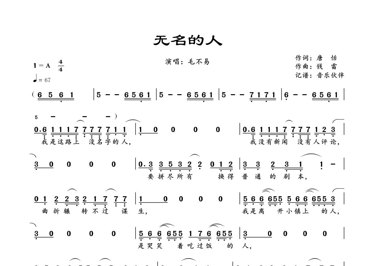 当前位置:琴谱网>简谱>无名的人