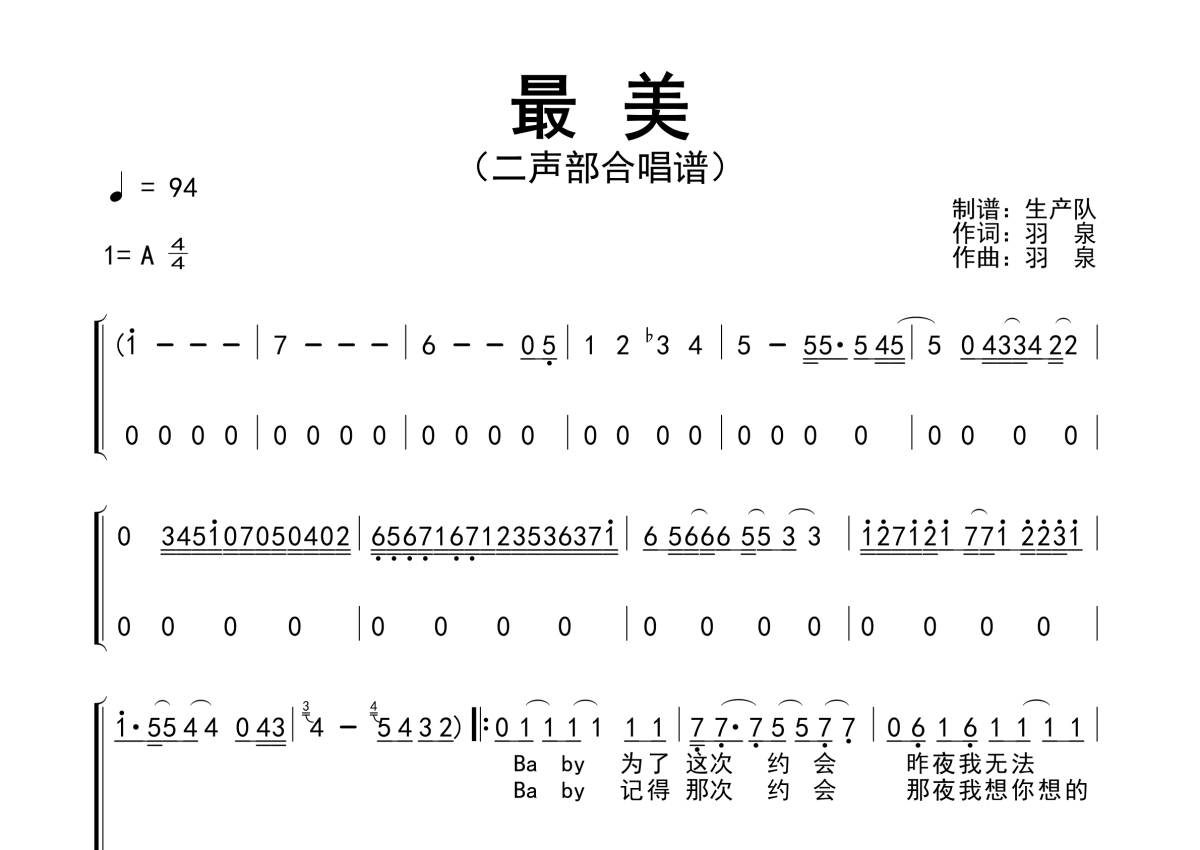 • 最美简谱 - 合唱谱 - 二声部合唱谱第1张