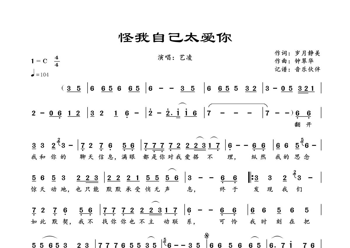 曲谱介绍: 艺凌《怪我自己太爱你》,音乐伙伴编配出品,共有1张高清图谱,免翻页排版设计。