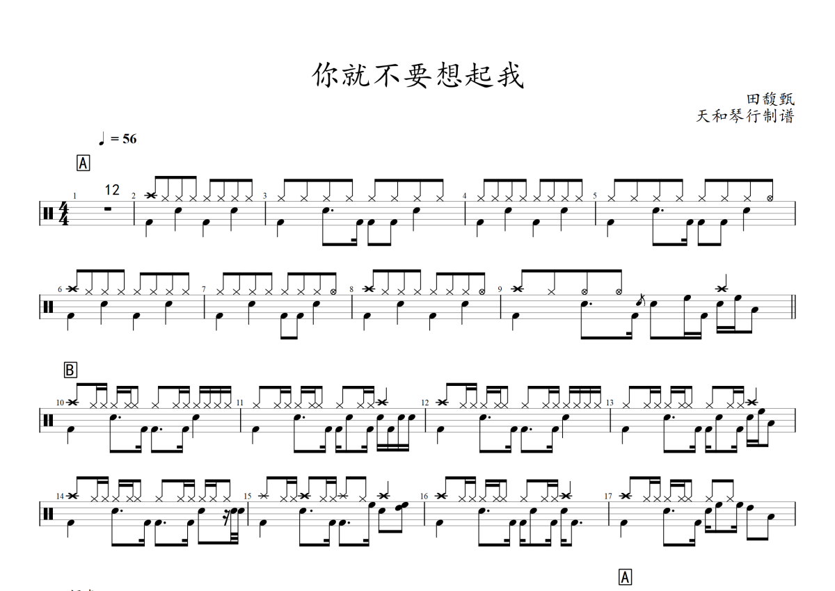 • 你就不要想起我鼓谱 - 田馥甄 - 架子鼓谱第1张