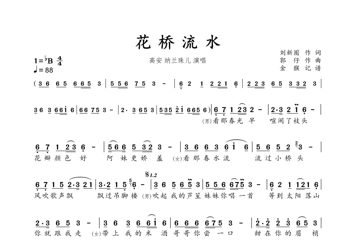 • 花桥流水简谱 - 高安&纳兰珠儿第1张