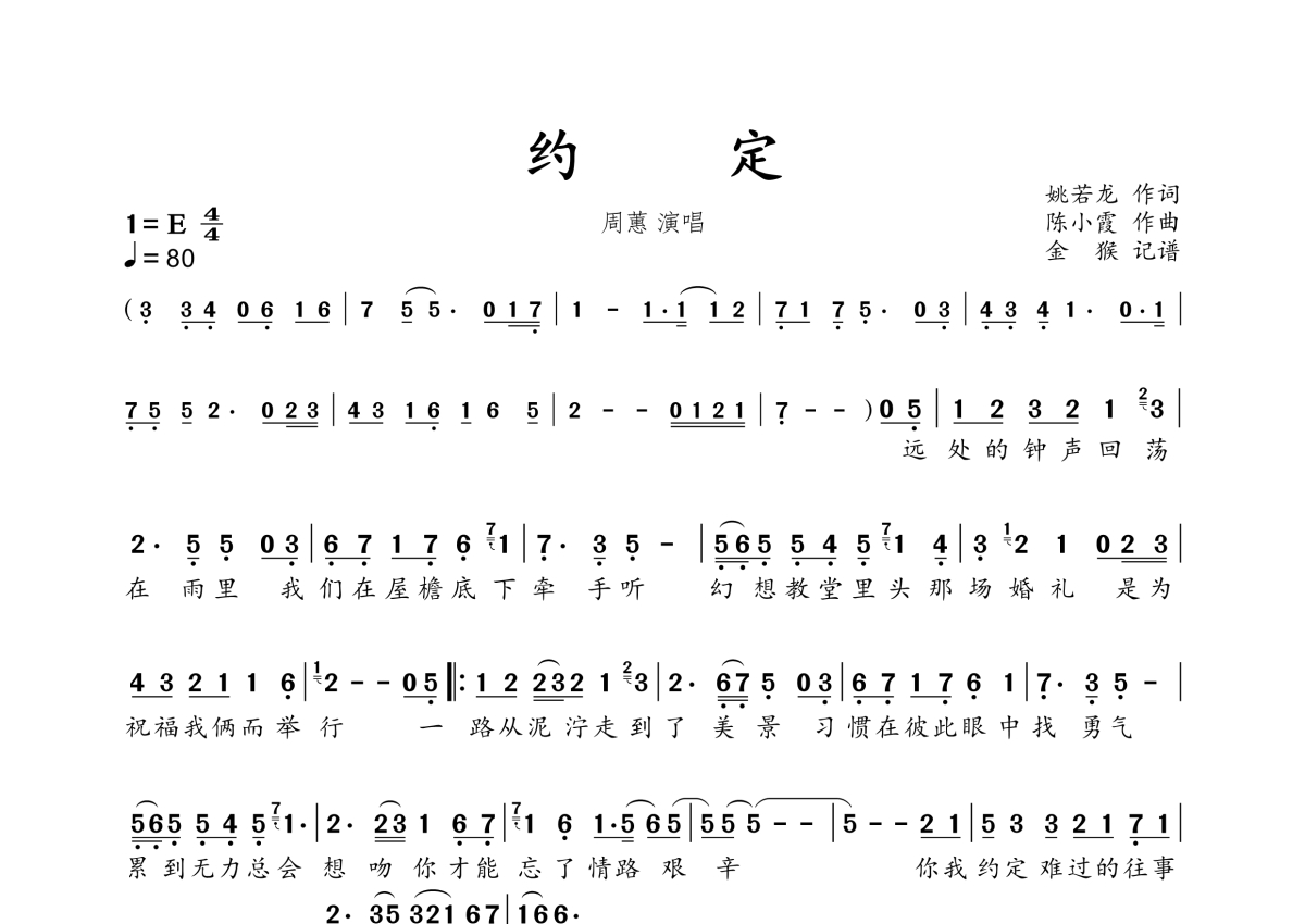 当前位置:琴谱网>简谱>约定