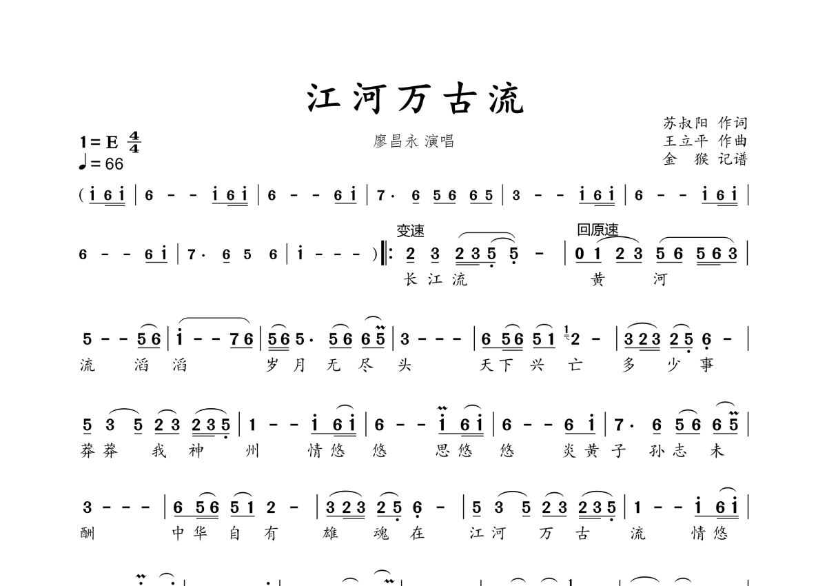• 江河万古流简谱 - 廖昌永第1张