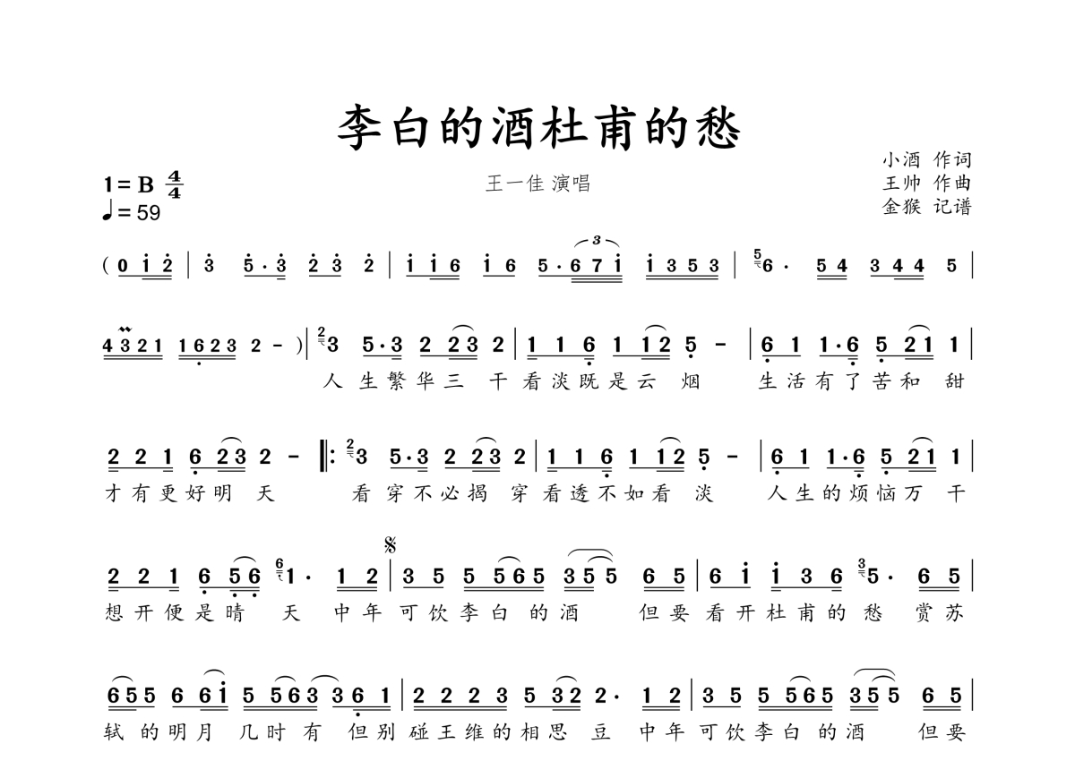 • 李白的酒杜甫的愁简谱 - 王一佳第1张