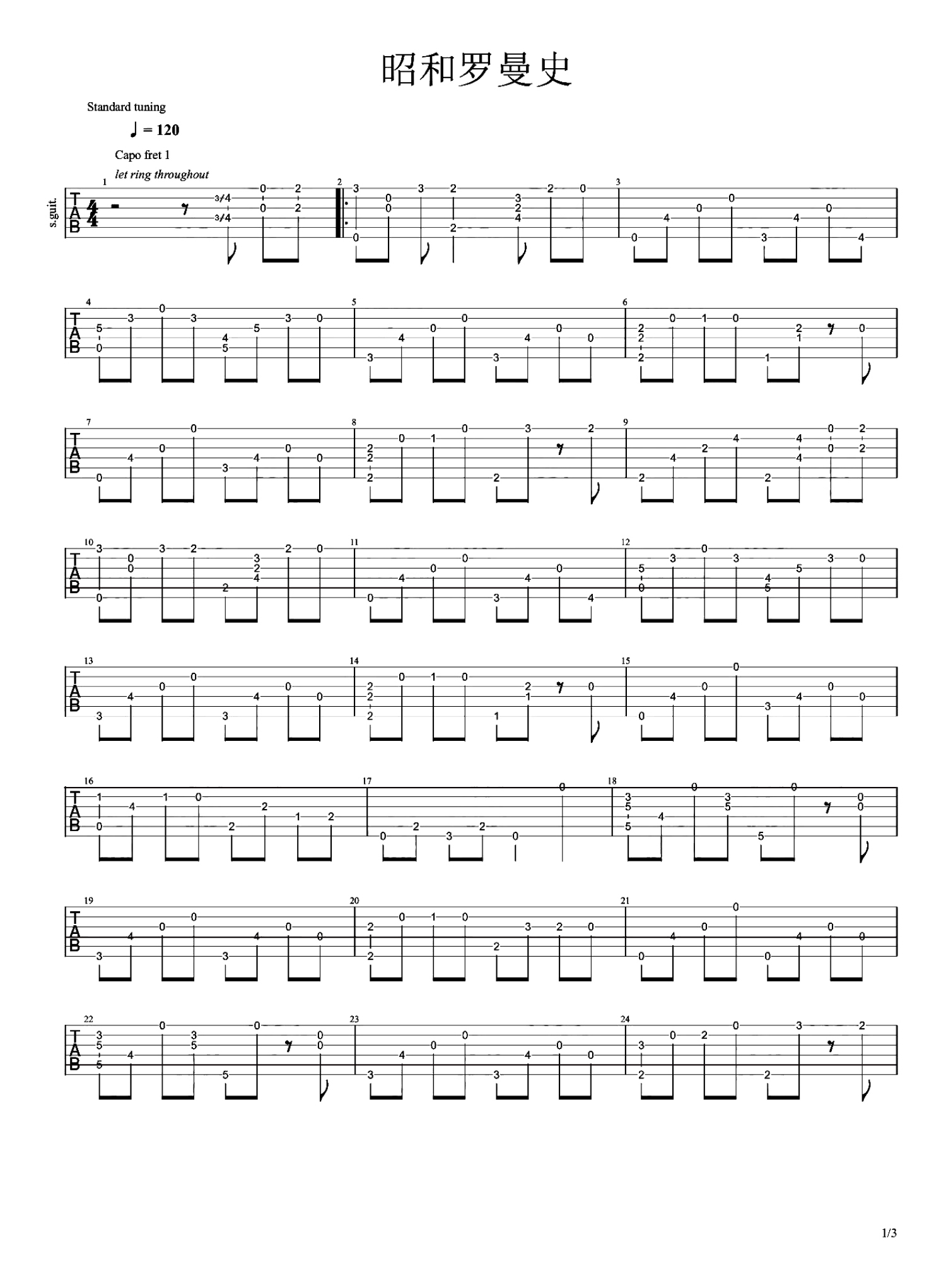 曲谱介绍: 岸部真明《昭和罗曼史》吉他谱_吉他独奏谱
