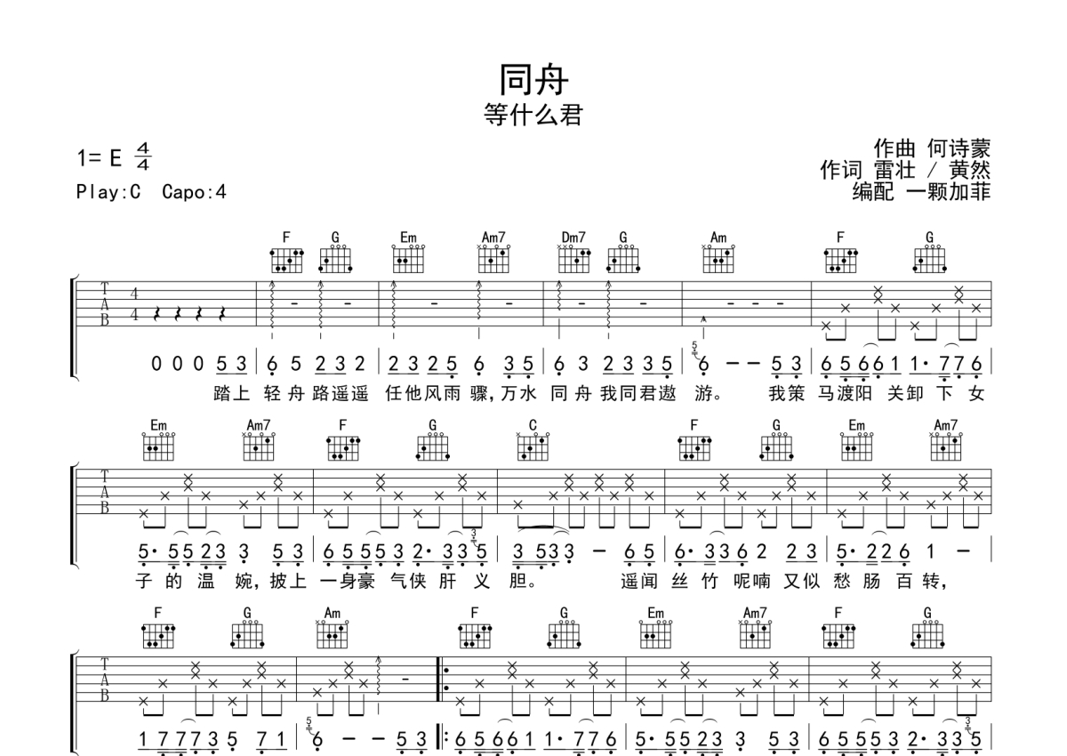 • 同舟吉他谱 - 等什么君 - C调吉他弹唱谱第1张