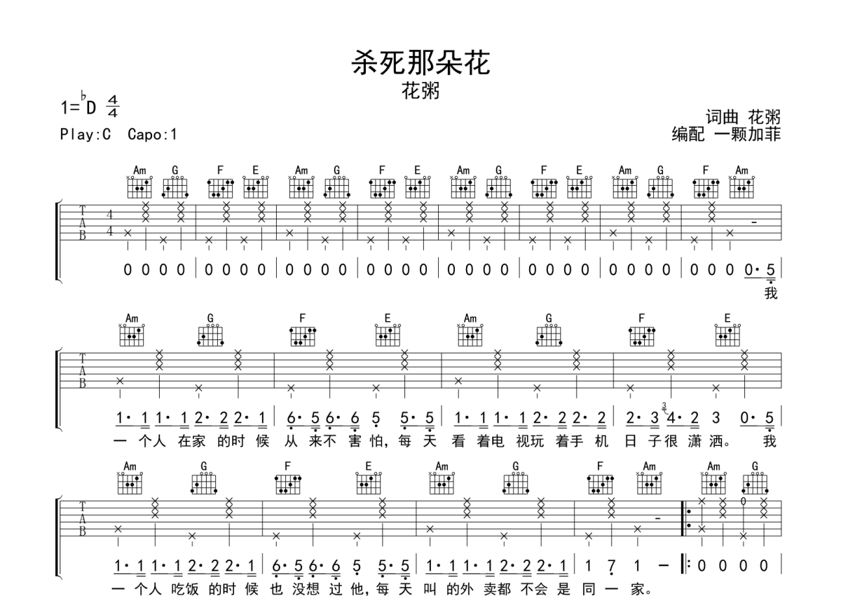 • 杀死那朵花吉他谱 - 花粥 - C调吉他弹唱谱第1张