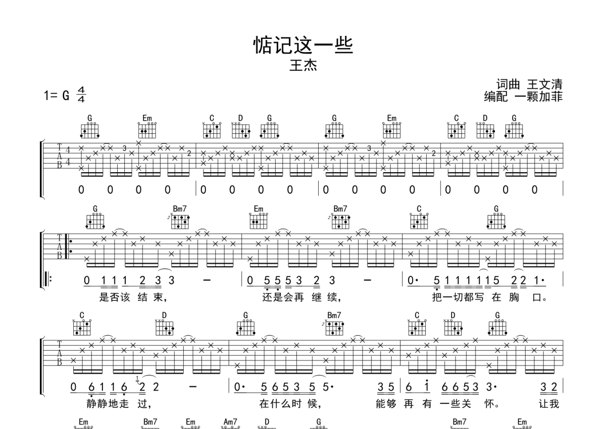 曲谱介绍: 王杰《惦记这一些》吉他弹唱谱,采用G调指法编配,一颗加菲编配出品,共有2张高清图谱,免翻页排版设计。