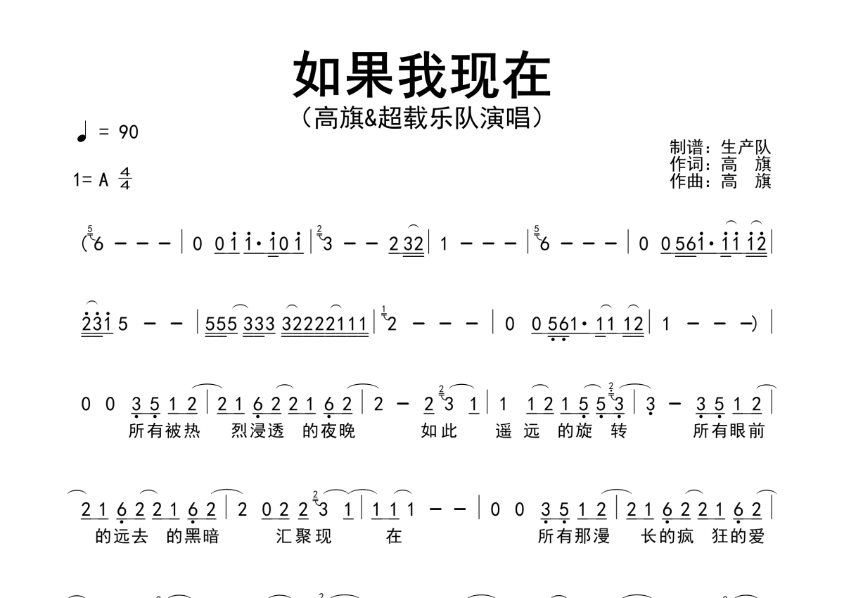 曲谱介绍: 超载乐队/高旗《如果我现在》,生产队编配出品,共有2张高清图谱,免翻页排版设计。
