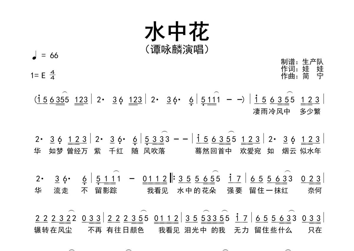 • 水中花简谱 - 谭咏麟 - 原版简谱第1张